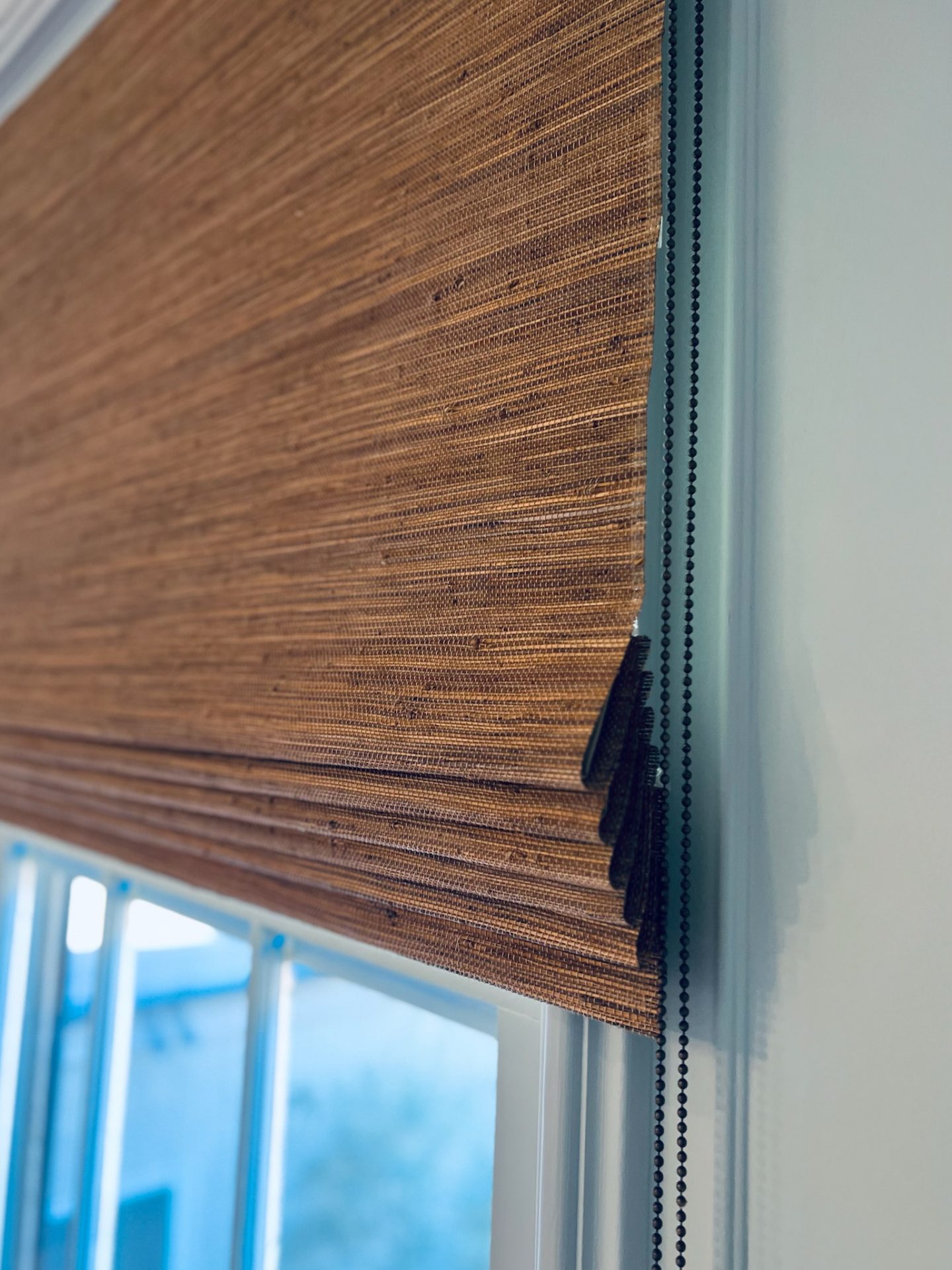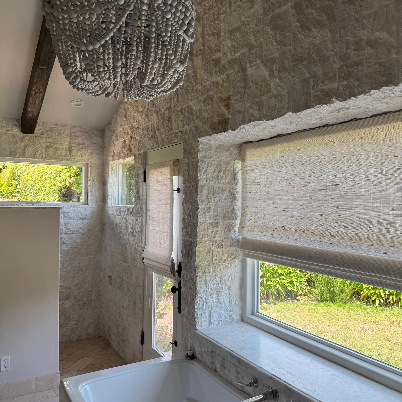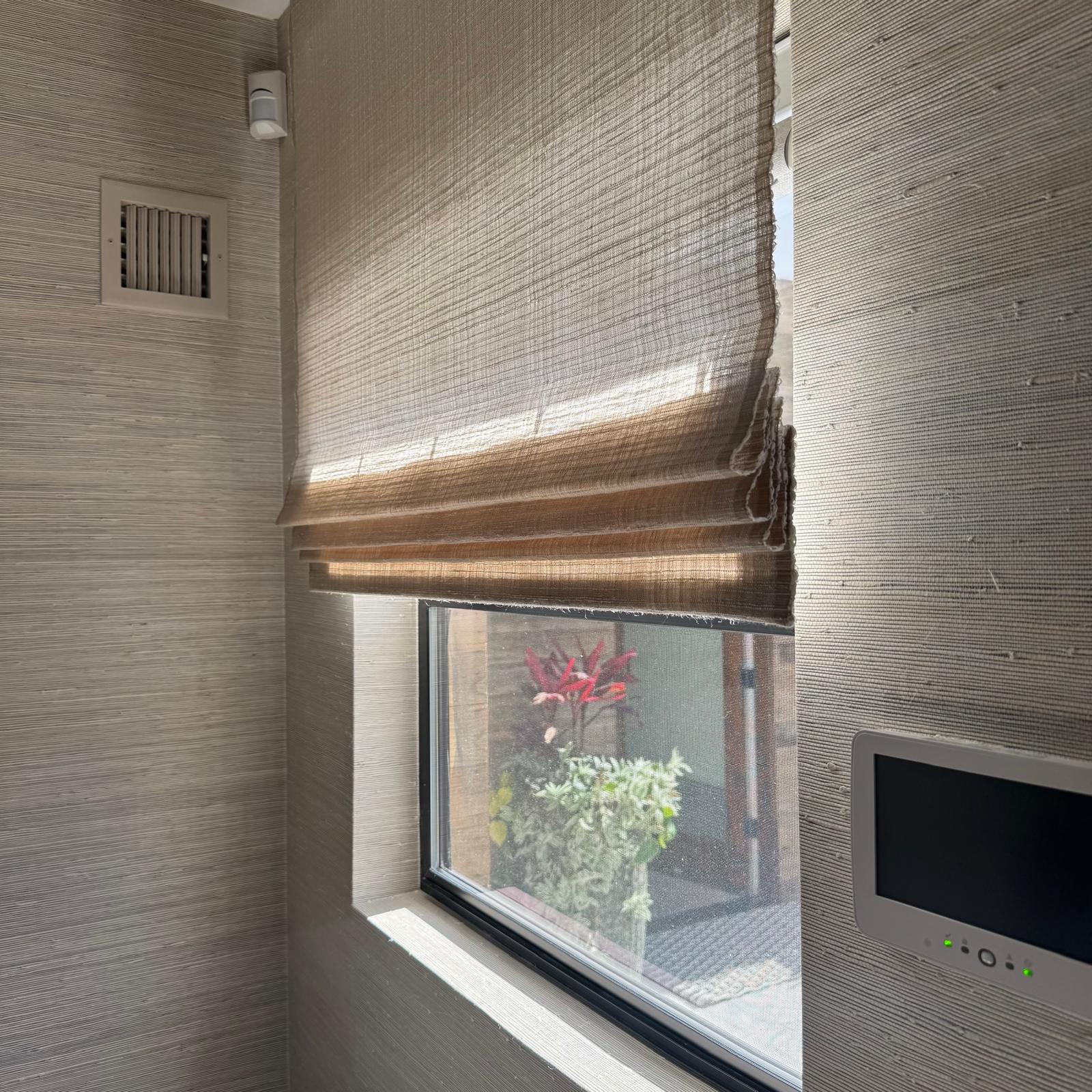 Clients across Malibu, Calabasas, and Pacific Palisades love how outside mount natural woven shades create a polished yet relaxed feel. The fabric rolls above the window, which keeps the frame visible and adds height to the walls.