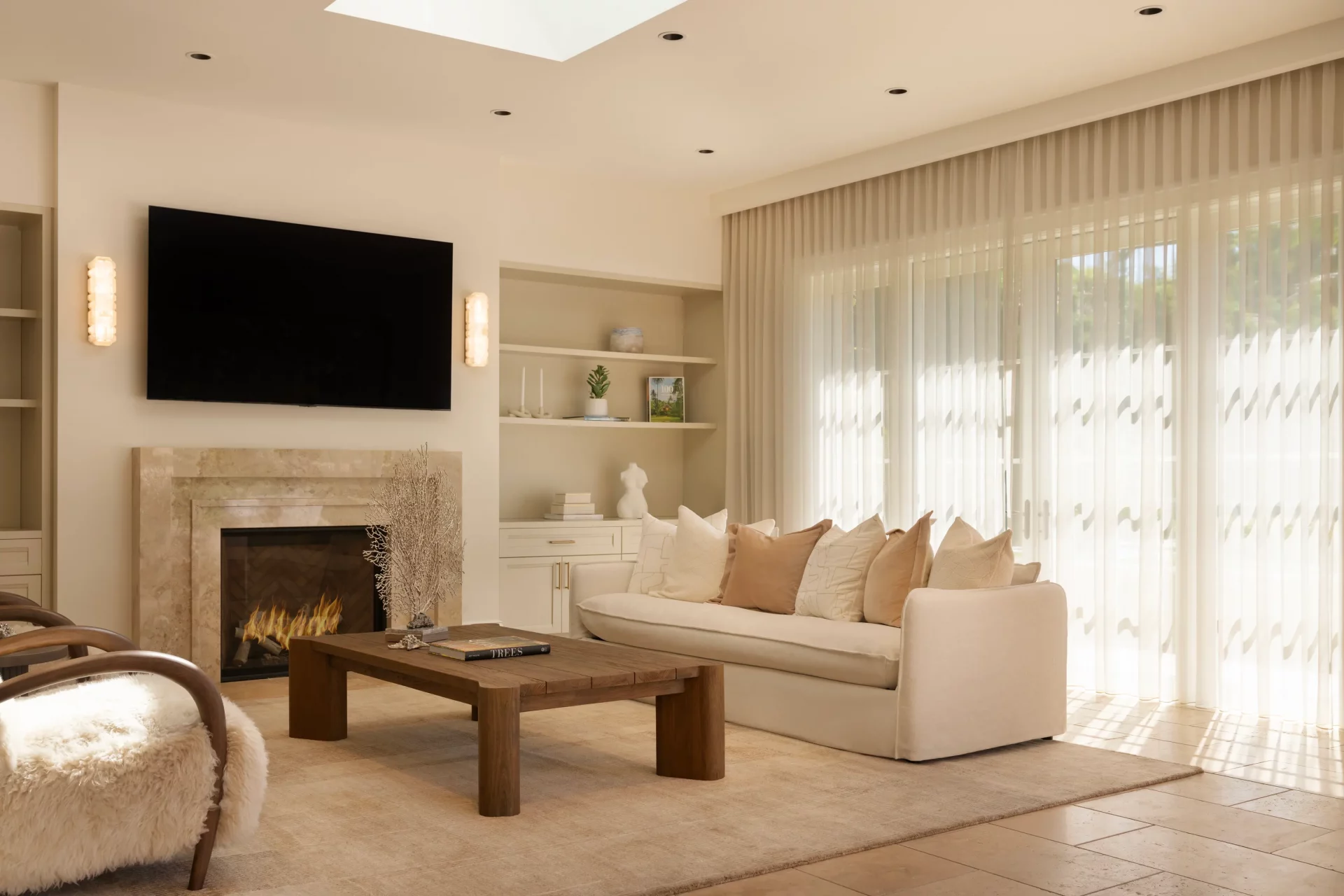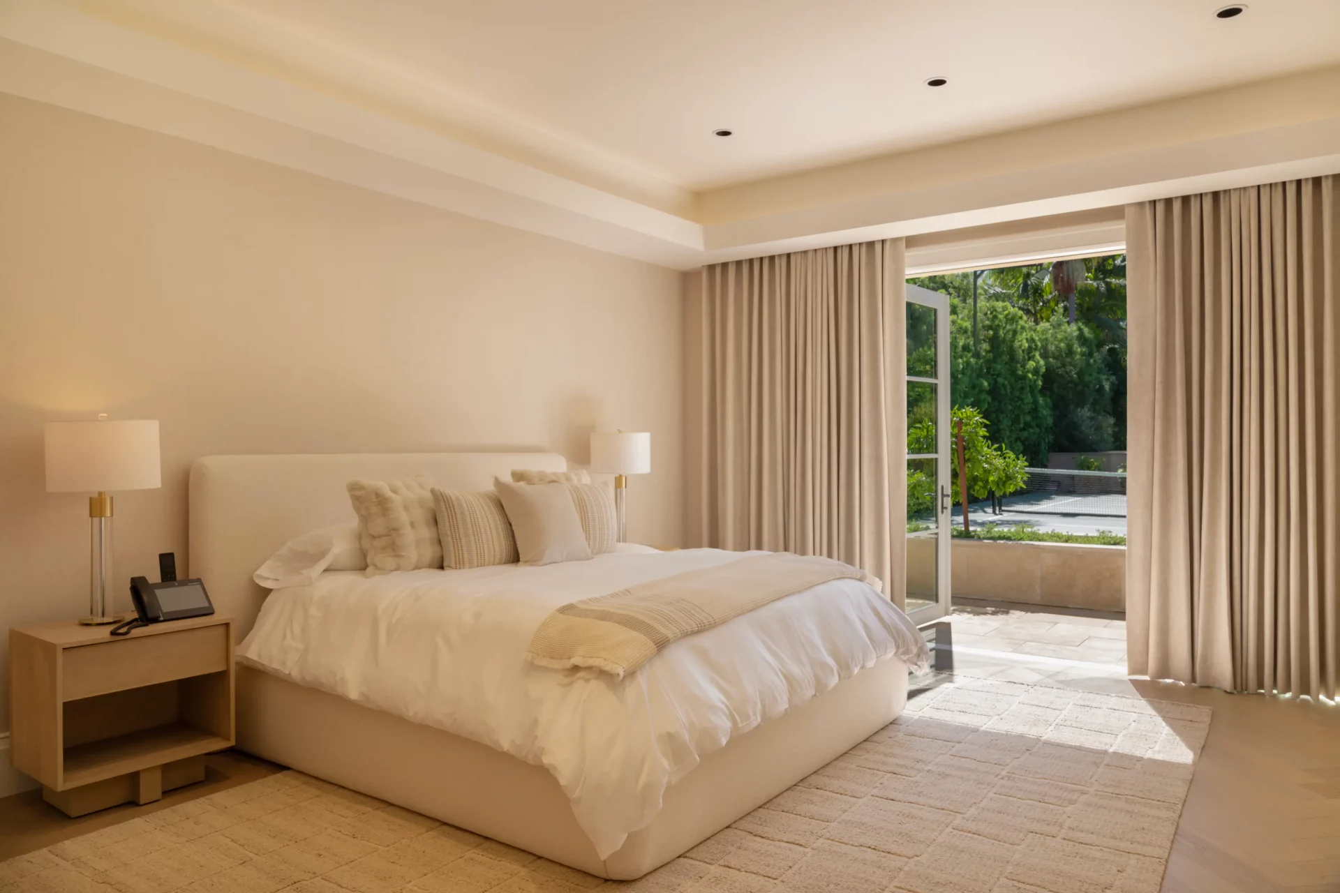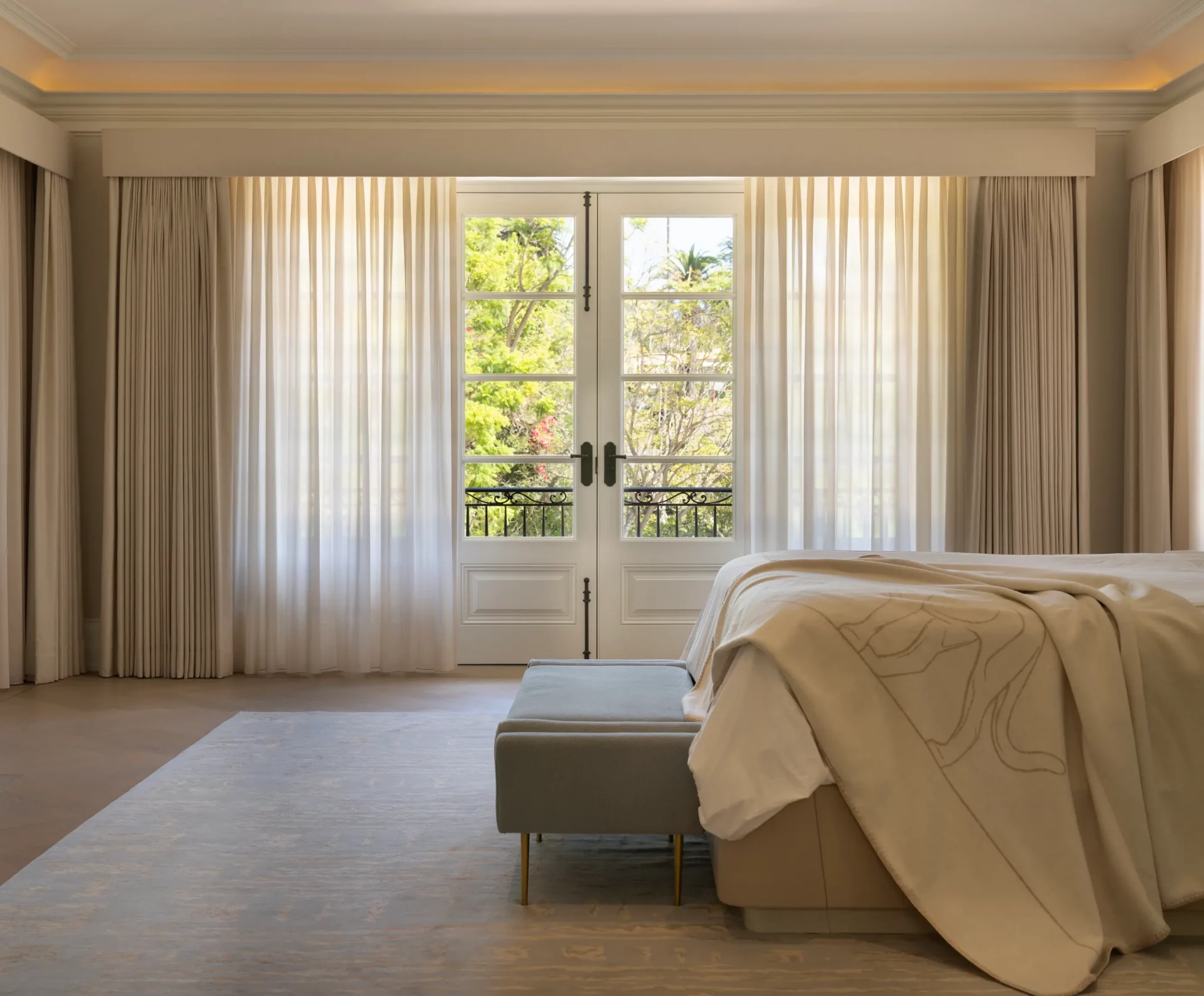 Every detail is intentional: airy textiles, tailored pleats, and a palette that feels calm yet elevated. The result is a sophisticated Los Angeles interior that feels effortless, luminous, and beautifully composed.